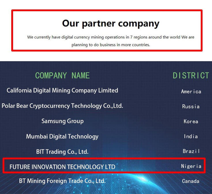 FUTURE INNOVATION TECHNOLOGY LTD is a subsidiary authorized by our BTmining headquarters to be established locally in Nigeria.